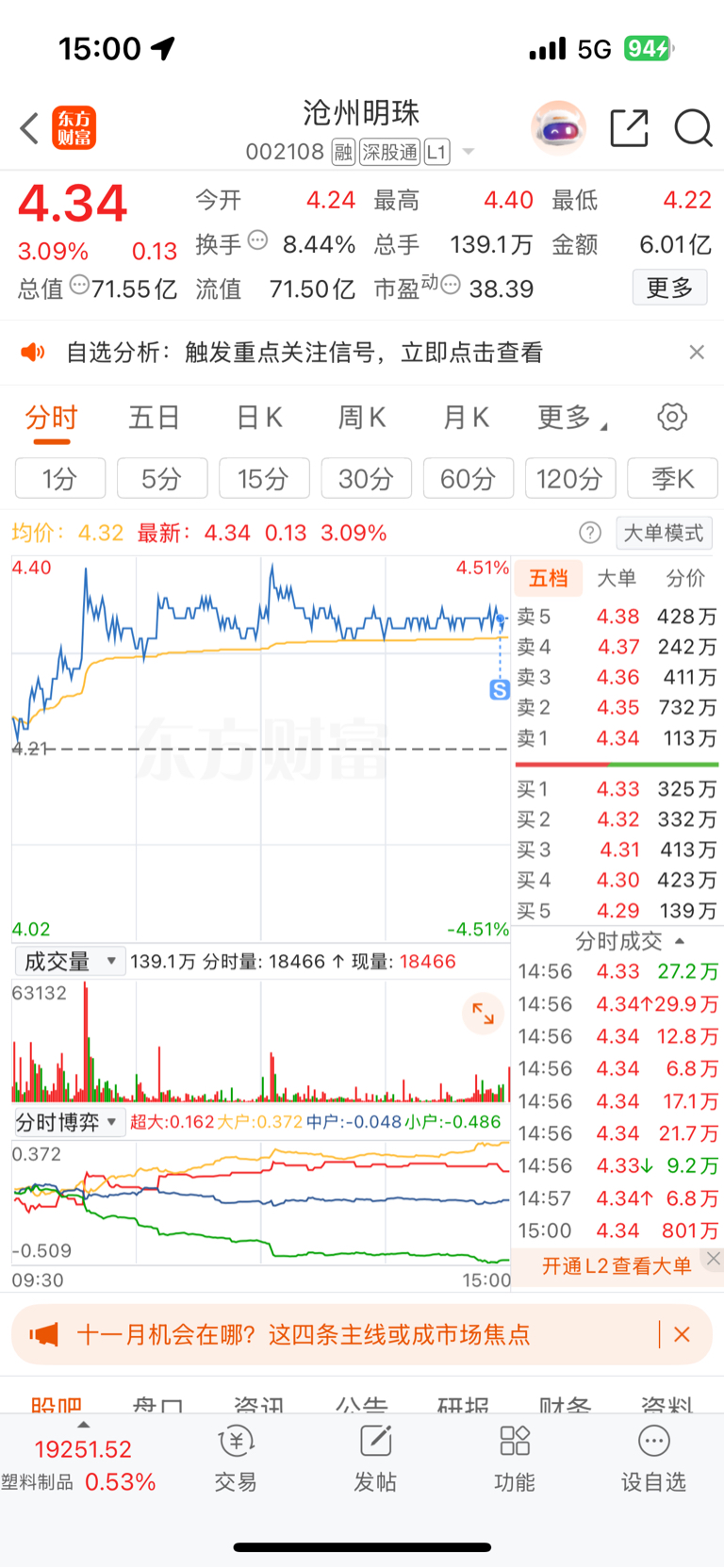 $沧州明珠(SZ002108)$ 最后也没等到那一梭子,空仓了