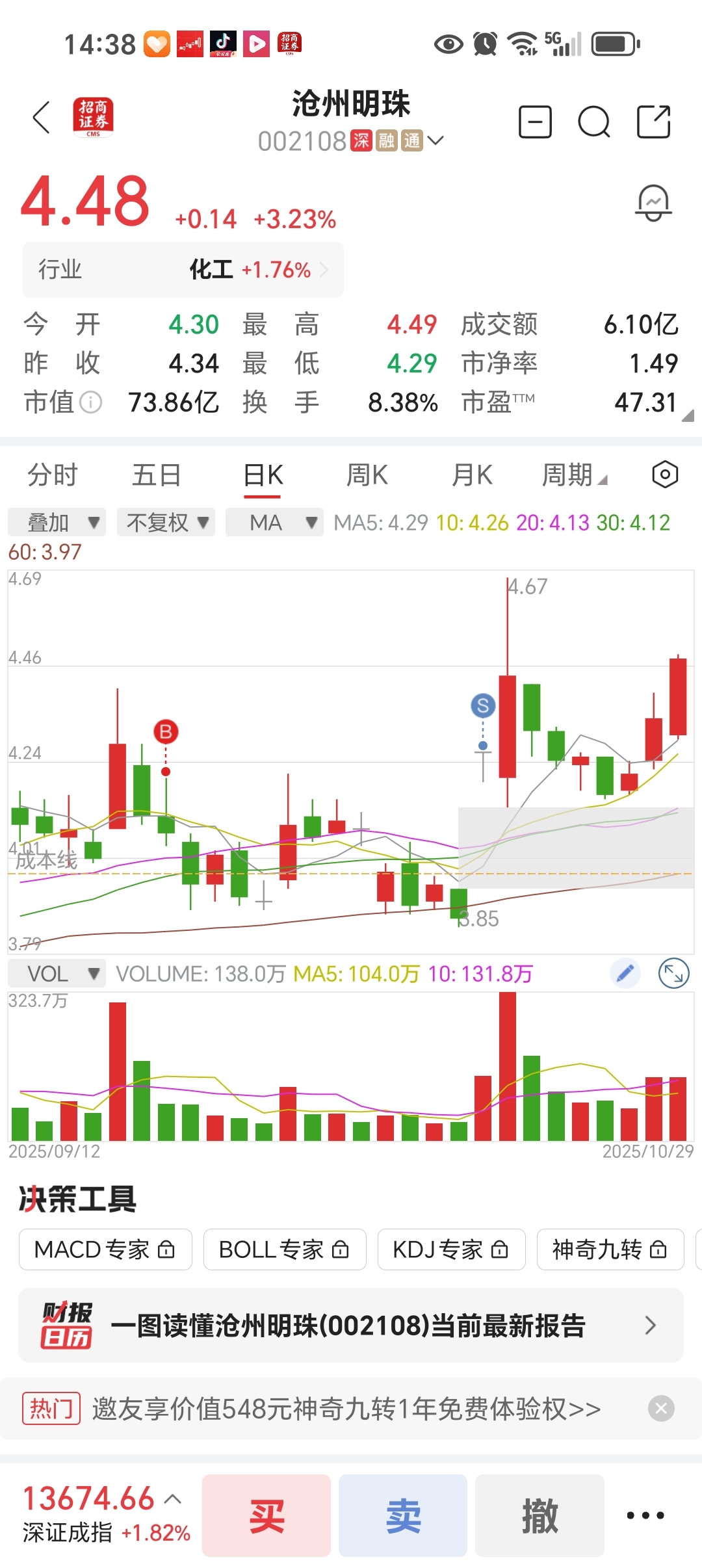 $沧州明珠(SZ002108)$ 卖在起飞前,拿不稳,,,