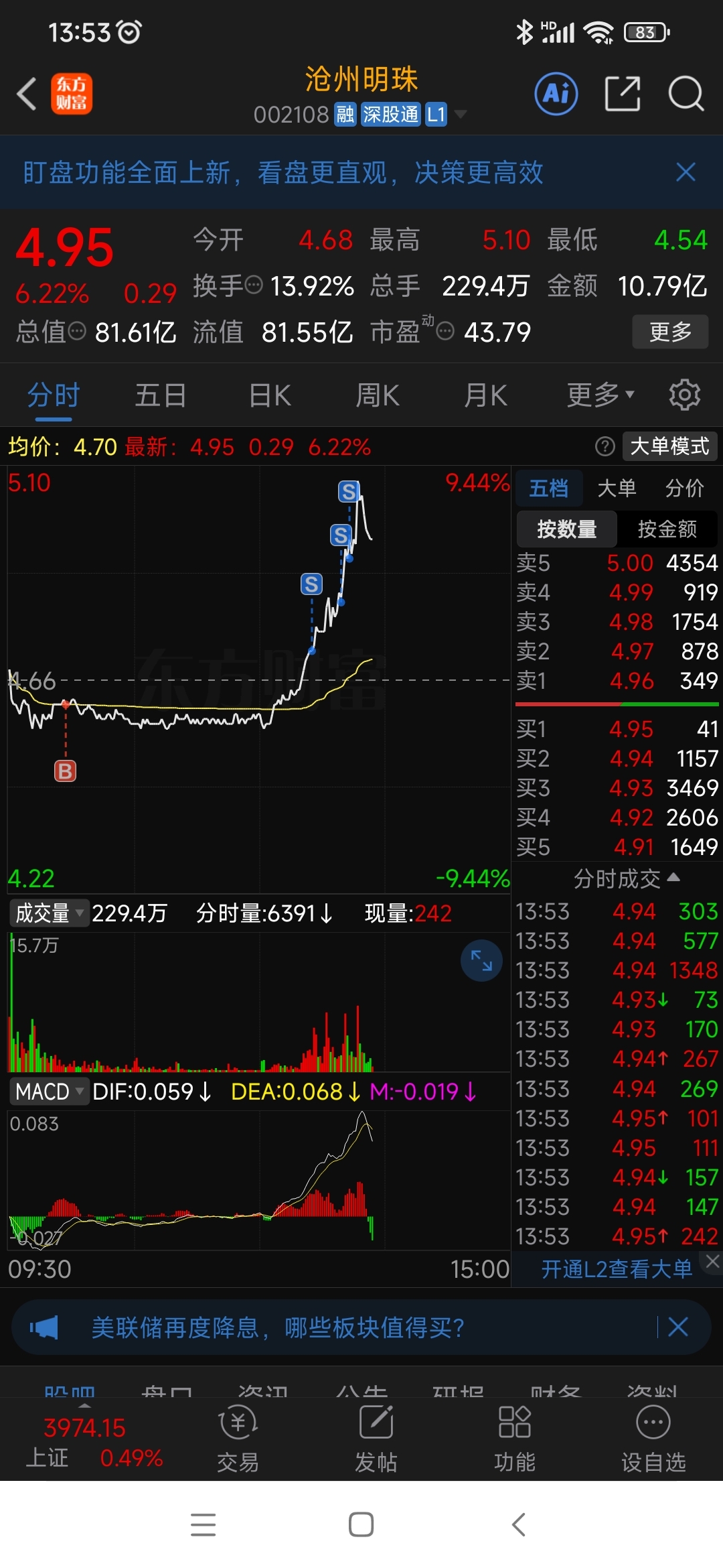 $沧州明珠(SZ002108)$ 没有卖在最高点,但是就剩个底仓了,还是挺满意的