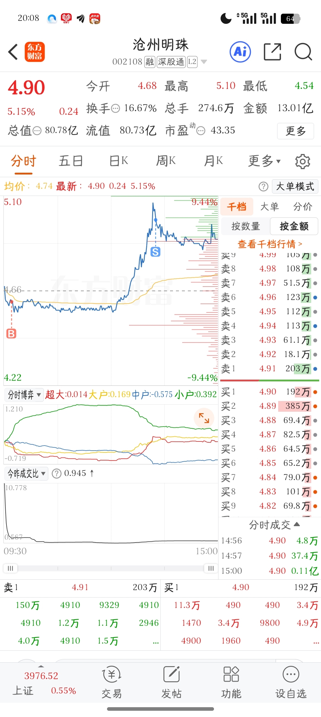 $沧州明珠(SZ002108)$ 一涨牛鬼蛇神就来了