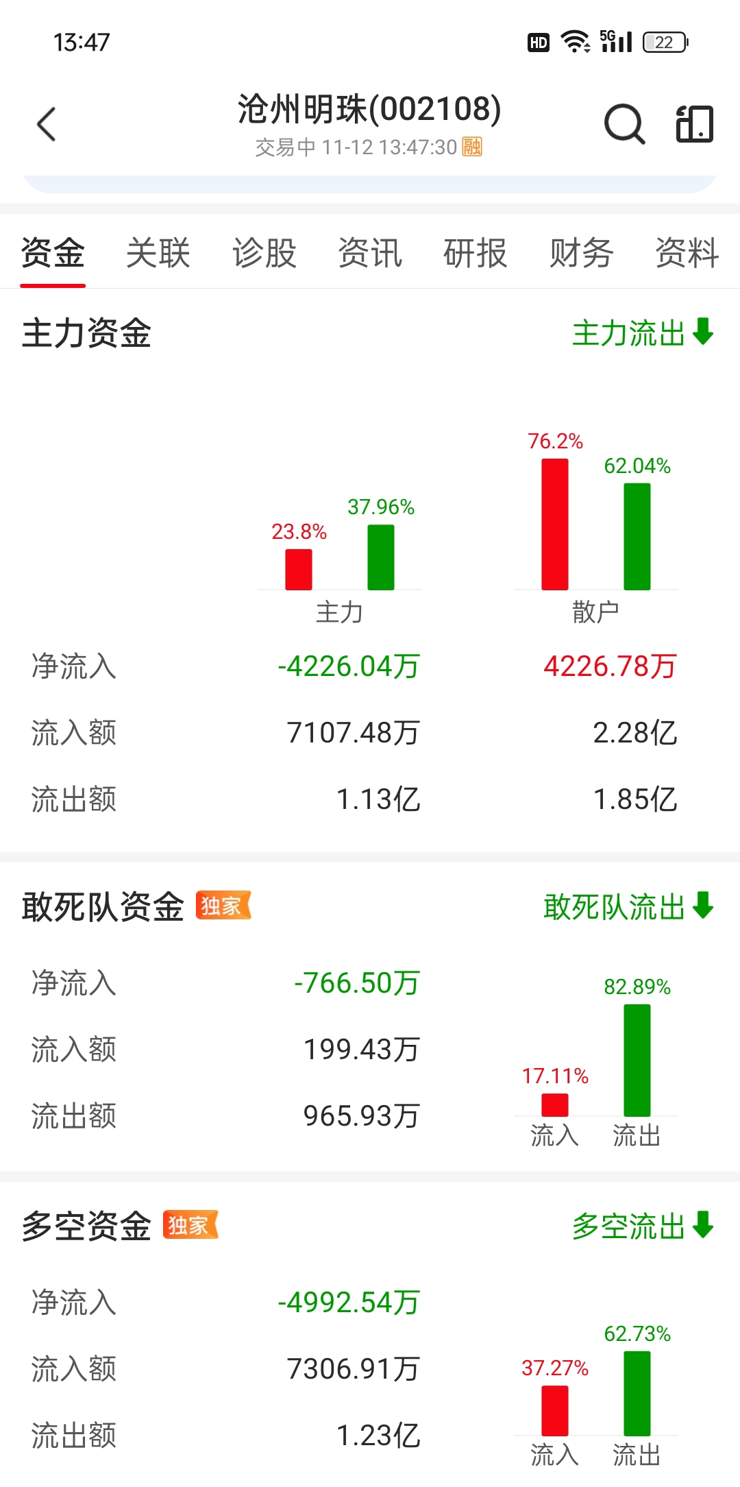 $沧州明珠(SZ002108)$ 主力,柚子,都已放弃,没有反转的迹象。估计明天还要跌,个人观点,仅供参考。