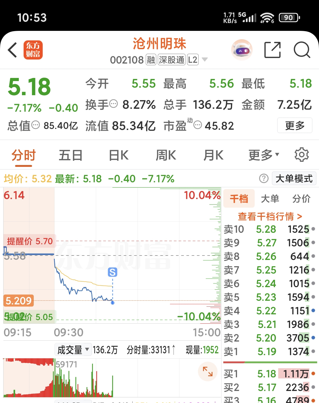 $沧州明珠(SZ002108)$