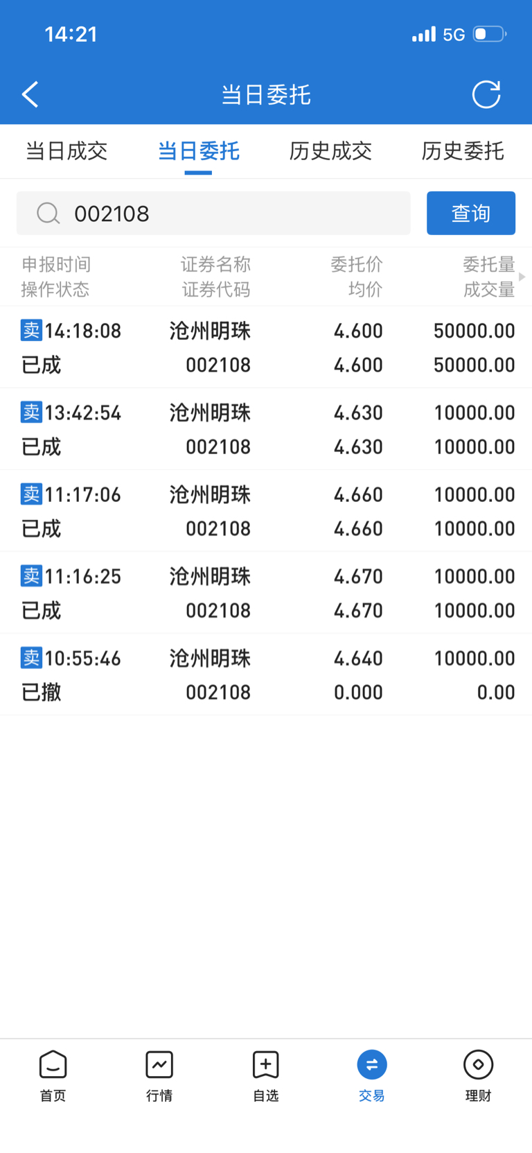 $沧州明珠(SZ002108)$ 今天终于把卖光了