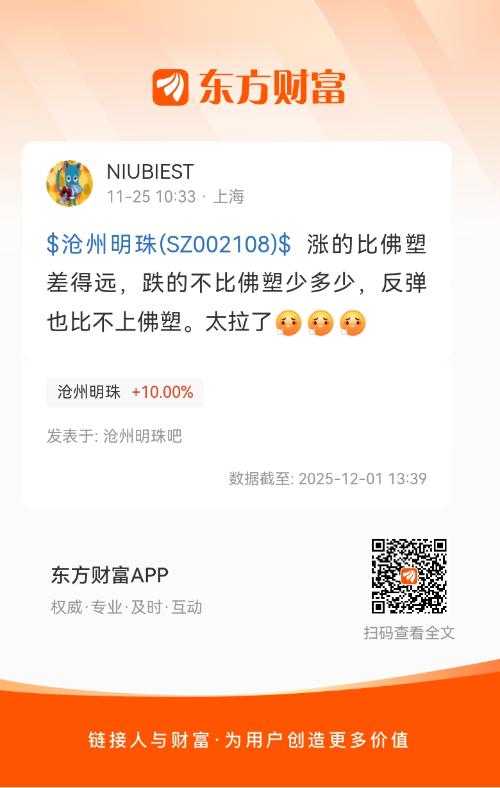 大家看看这个狗托天天哭坟,天天唉声叹气$沧州明珠(SZ002108)$@NIUBIEST