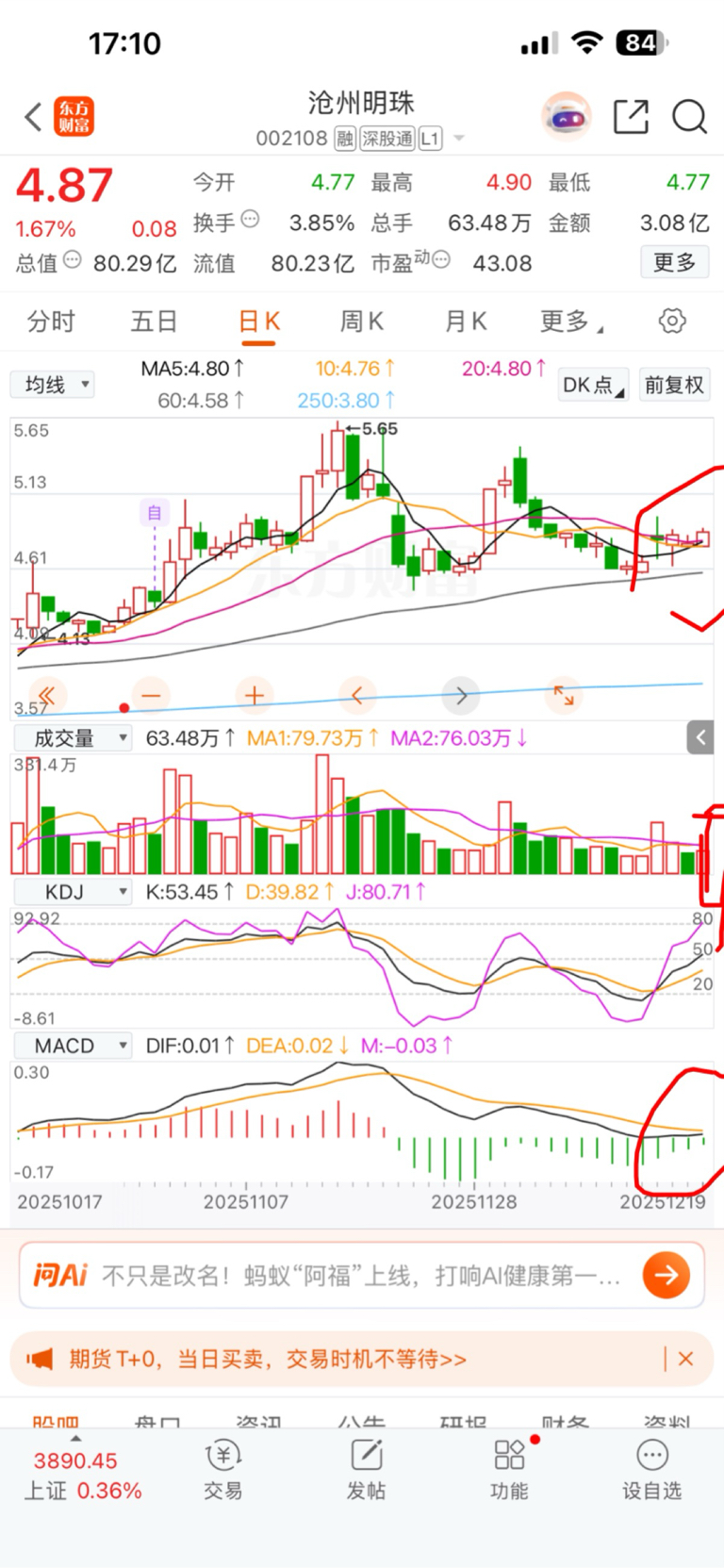 $沧州明珠(SZ002108)$ macd在0轴上穿,均线粘合,如果周一来个大阳的话,走势就非常漂亮了。还有最后一点点米,找机会加。。。。