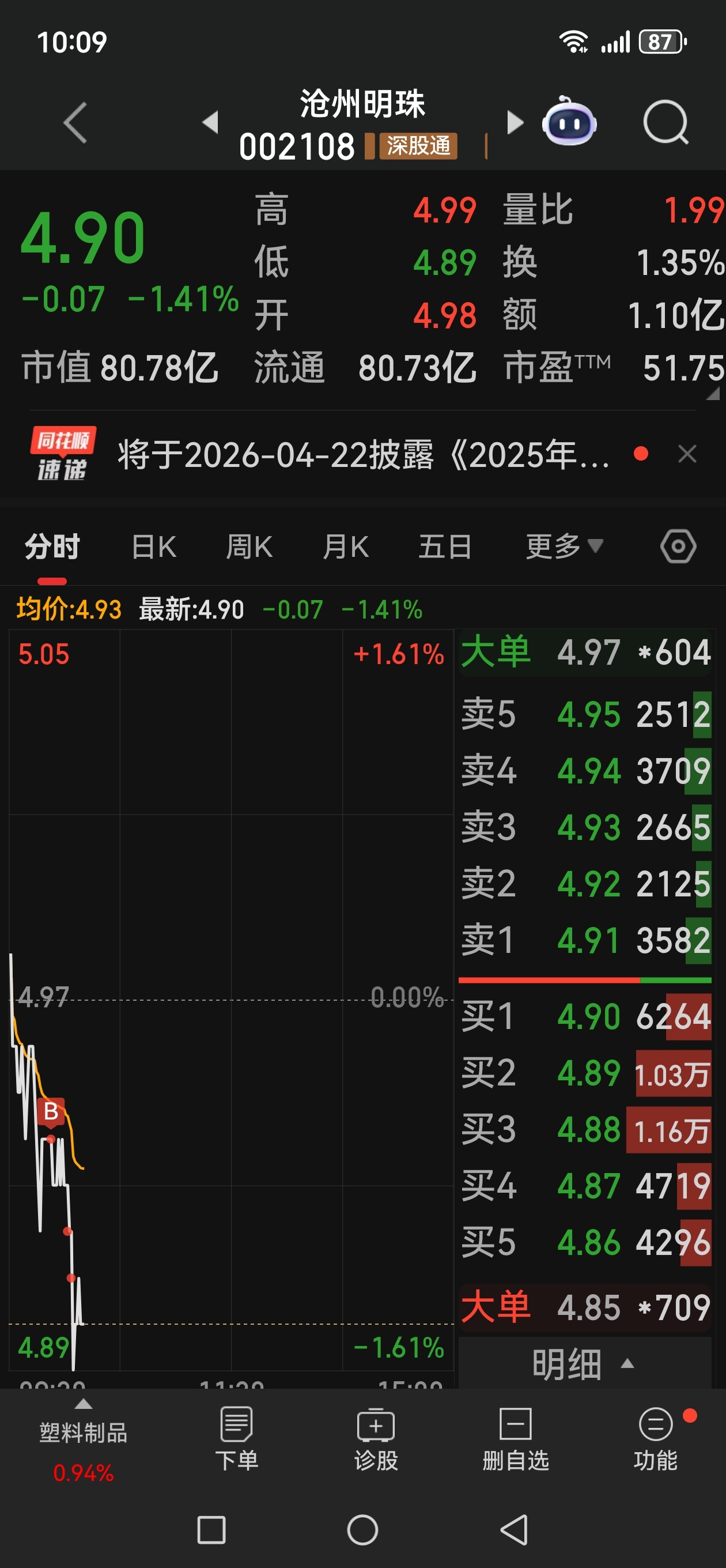 $沧州明珠(SZ002108)$ 回来了