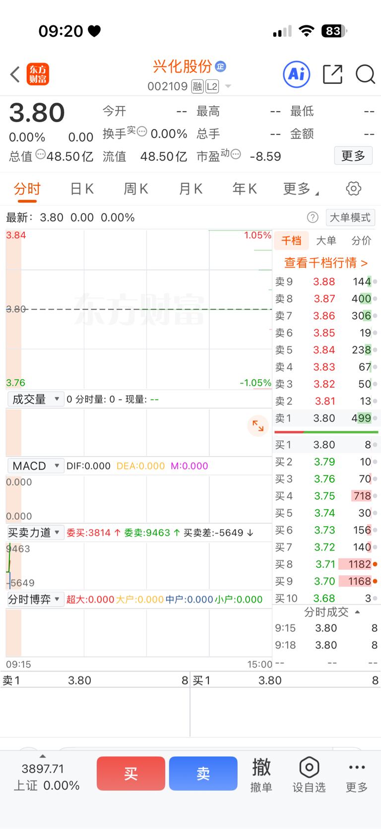 $兴化股份(SZ002109)$ 卑微的8手,看来是没人买这玩意了