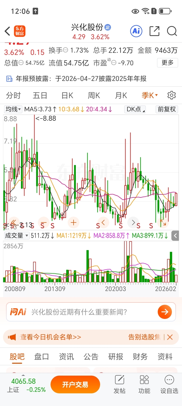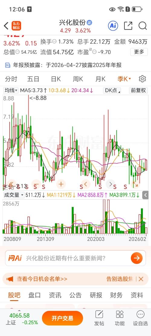 $兴化股份(SZ002109)$  拿了3年了,唉……6块多进的,还能不能回本呢