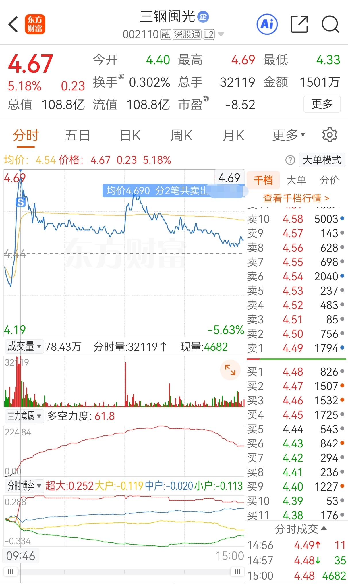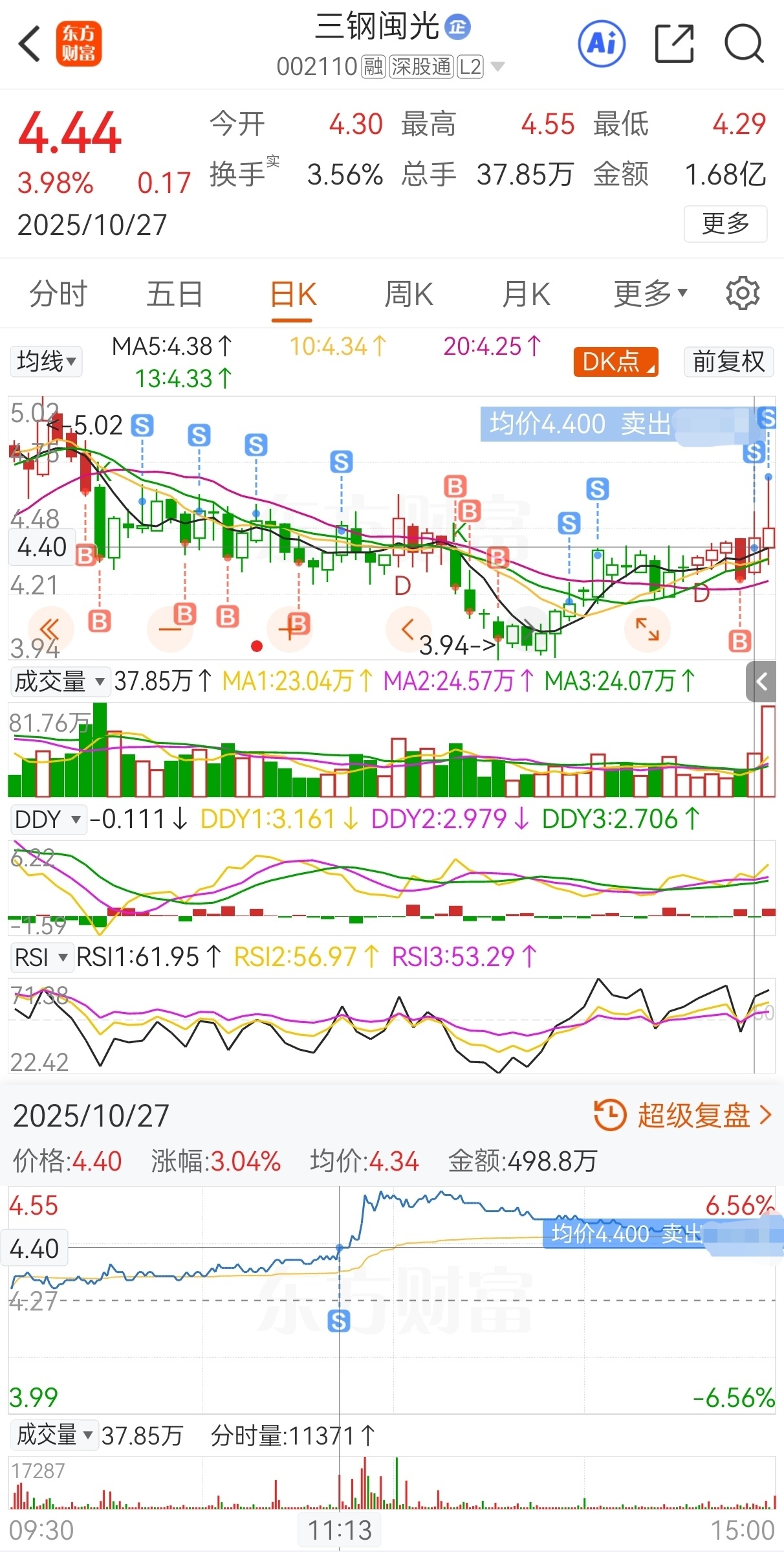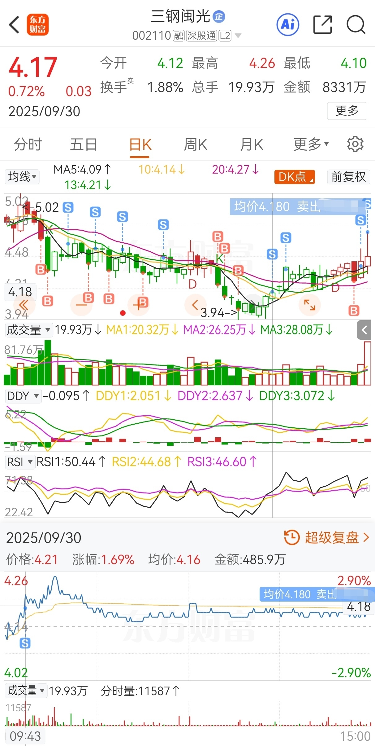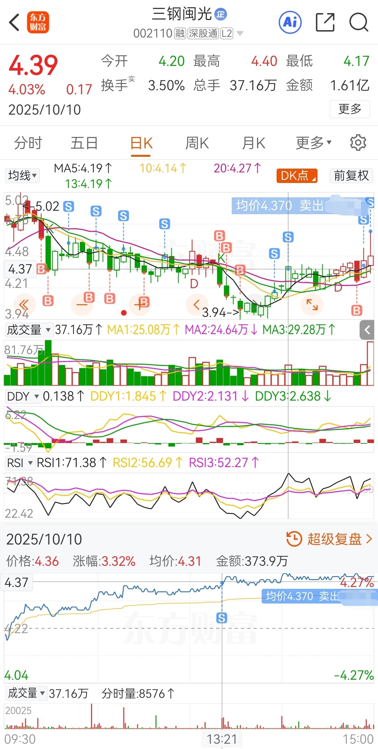 $三钢闽光(SZ002110)$ 原计划今买明卖,实际4.63买,4.36加仓,4.59减仓,4.42再加仓,4.55再减仓,4.36继续加仓,4.54继续减仓,4.34又加仓,4.47又减仓,4.24还加仓,4.14依然加仓,4.03仍然加仓,4.18还减仓,4.37依然减仓,4.27减持加仓,4.4仍然减仓,4.69卖,实盘短线套利三钢闽光,成功收米走人!