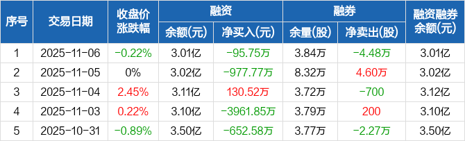 三钢闽光:融资净偿还95.75万元,融资余额3.01亿元(11-06)