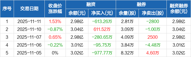 三钢闽光:融资净偿还613.26万元,融资余额2.98亿元(11-11)