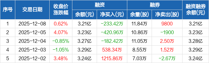 三钢闽光:连续3日融资净偿还累计836.81万元(12-08)