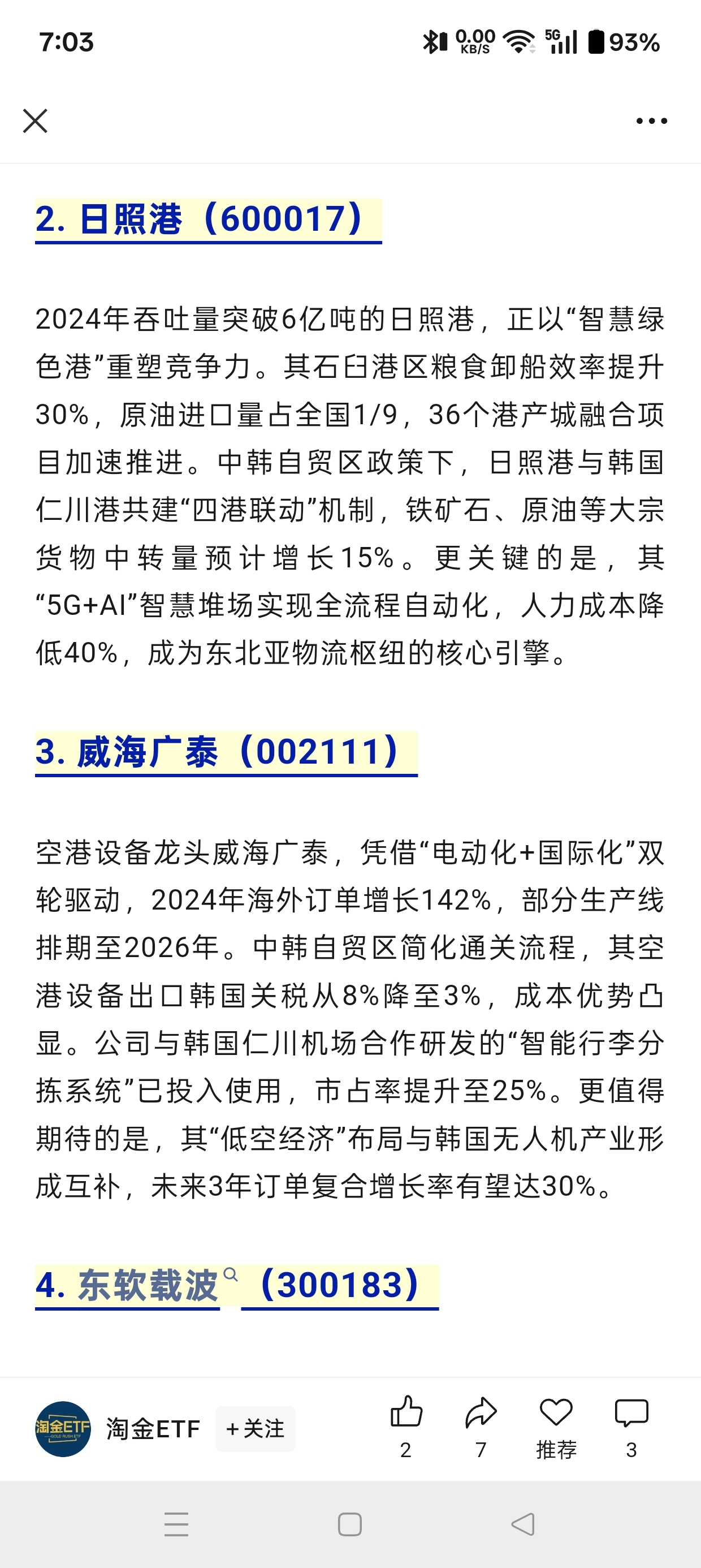 $威海广泰(SZ002111)$ 不知名的微弱利好,应该没啥用,除非军工,空港,日韩和他相关的逆势上涨,才有可能不跌停,我准备拿到年底,随便了