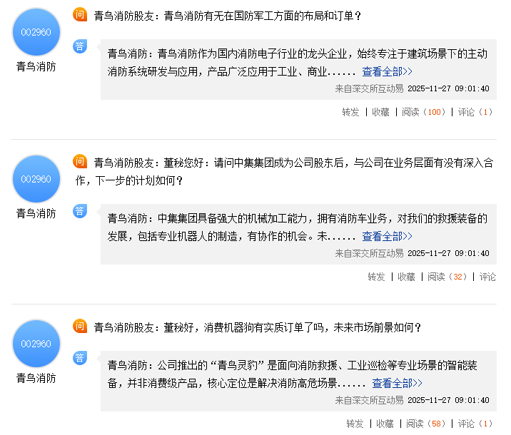 青鸟消防开盘就一直封板着,是因为人家青鸟消防董秘一大早就上班发贴回应投资者的昨天事件的咨询问题。