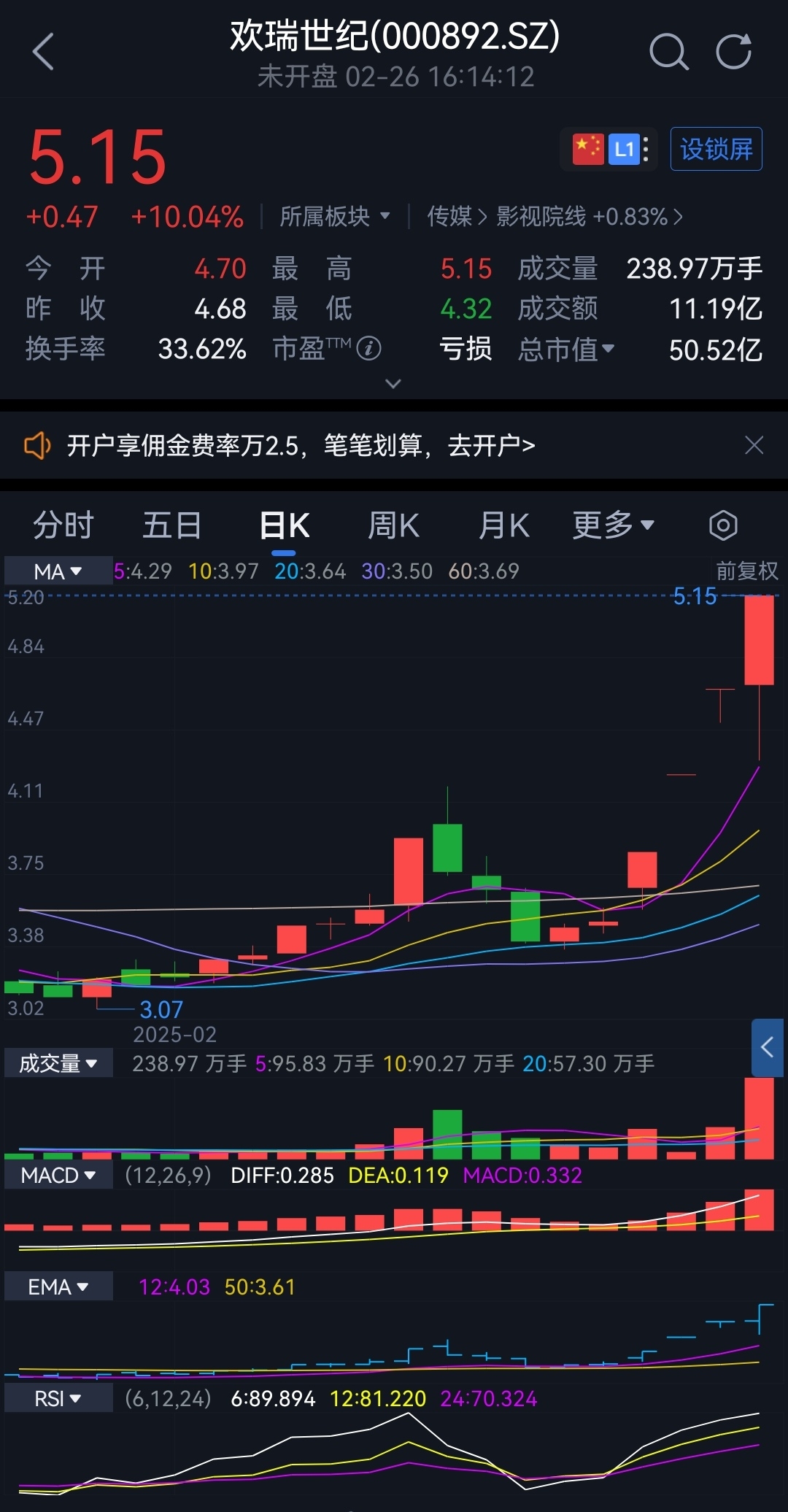 000892欢瑞世纪,002276万马股份,002474榕基轮件,002046国