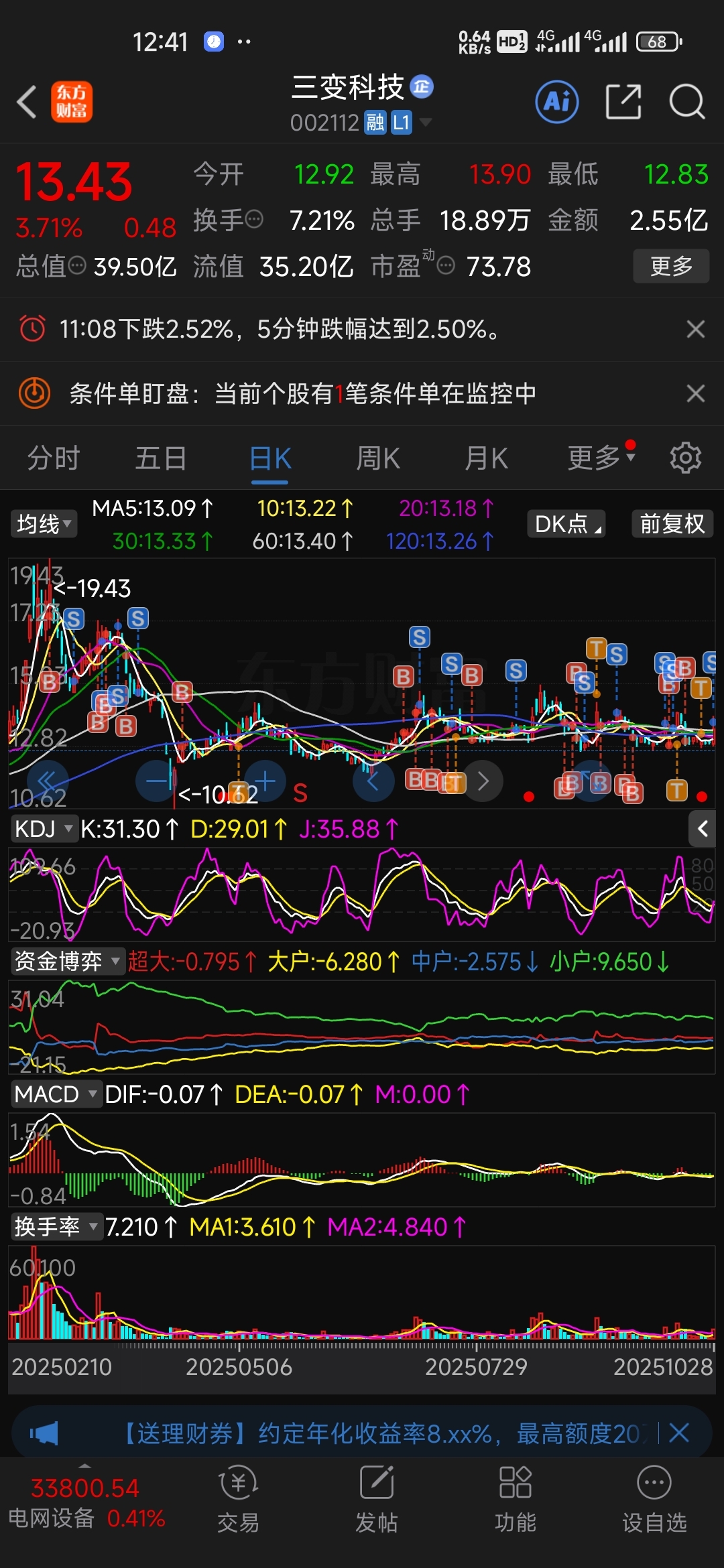 $三变科技(SZ002112)$ 20250224日17.5山顶建仓,今天终于解套啦!不容易呀