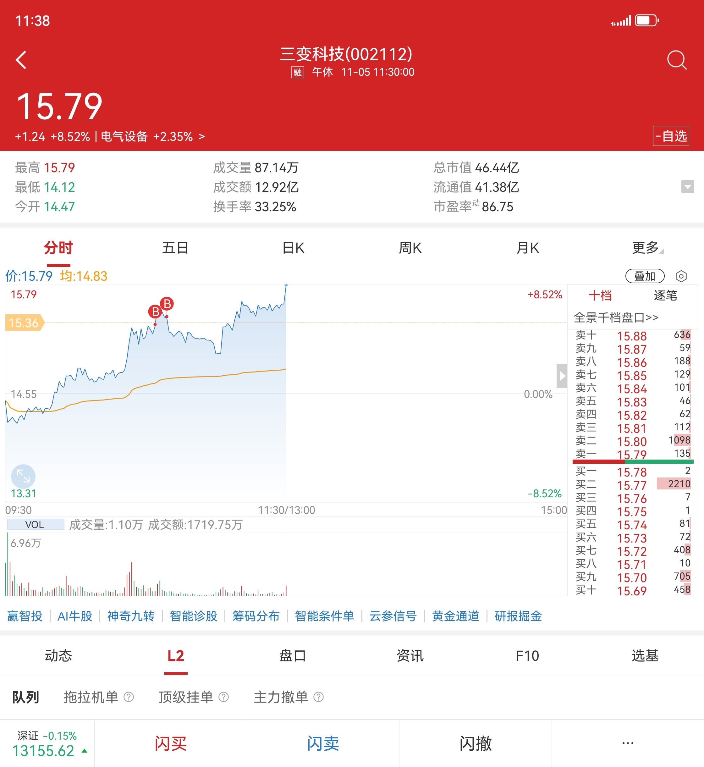 $三变科技(SZ002112)$ 抢高价票上车了。下午车门涨停焊死。