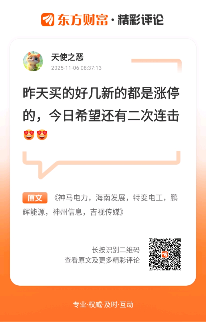 神马电力,微软和 Open AI 两大 CEO 的采访时透露,现在不是算力不够,是电不够用!都堆在仓库里歇着,就等电力供应跟上。神马,一方面它是马字辈前排,A 股年底就爱炒这类有话题度的标的;另一方面它是美国绝缘子核心供应商,欧洲、巴西市场都拿了大份额,还参与了英国核电工程,正好踩中缺电、电网升级的风口。开盘后看有没有机会低吸 —— 毕竟之前追高吃过大亏,上次炒圣龙股份时,尾盘追高直接被套,这次可不敢冲动。