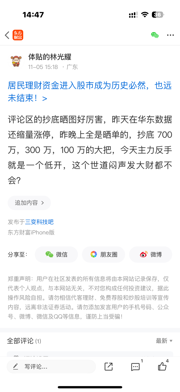 温馨提示: 1.根据《证券法》规定,禁止编造、传播虚假信息或者误导性信息,扰乱证券市场;2.用户在本社区发表的所有资料、言论等仅代表个人观点,与本网站立场无关,不对您构成任何投资建议。用户应基于自己的独立判断,自行决定证券投资并承担相应风险。《东方财富社区管理规定》