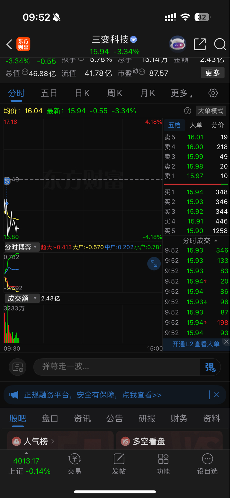 温馨提示: 1.根据《证券法》规定,禁止编造、传播虚假信息或者误导性信息,扰乱证券市场;2.用户在本社区发表的所有资料、言论等仅代表个人观点,与本网站立场无关,不对您构成任何投资建议。用户应基于自己的独立判断,自行决定证券投资并承担相应风险。《东方财富社区管理规定》