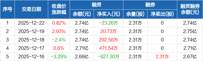 三变科技:融资净偿还23.26万元,融资余额2.74亿元(12-22)