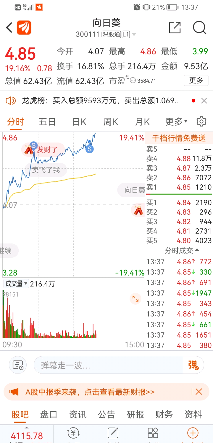 ,去了西电追了点还不如买你,周五抄底向日葵吃了个涨停20厘米,可惜卖飞了