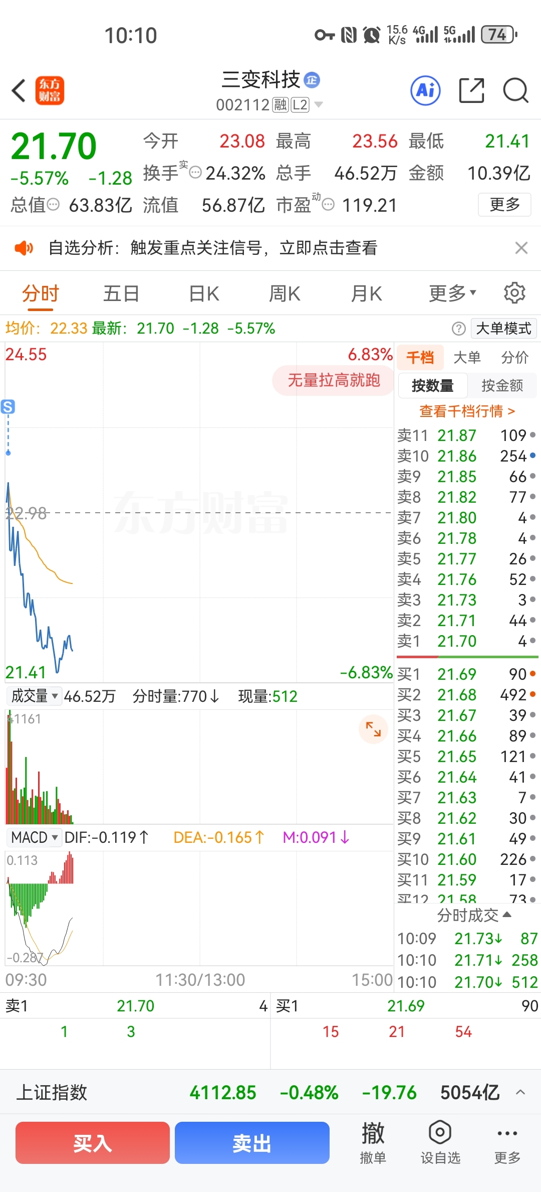 $三变科技(SZ002112)$ 虚空卖点