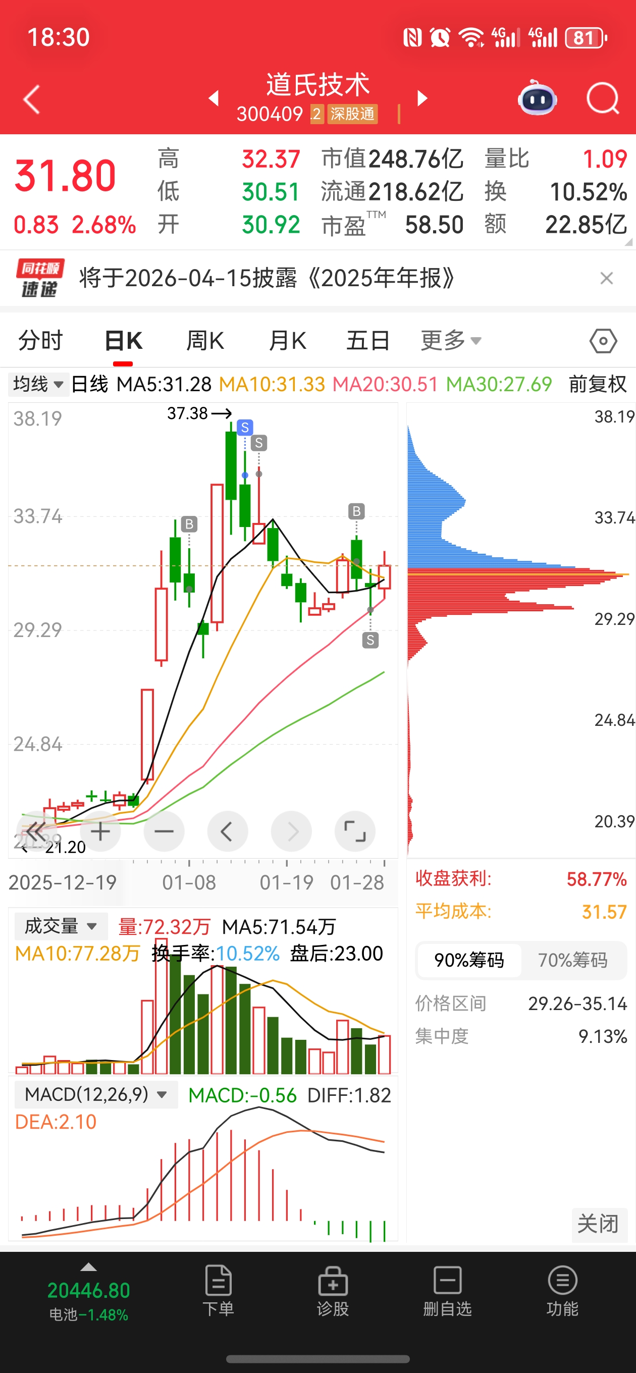太难啦,又回辙了,昨天割了道氏技术进了三变,早上冲高舍不得卖又回落了。