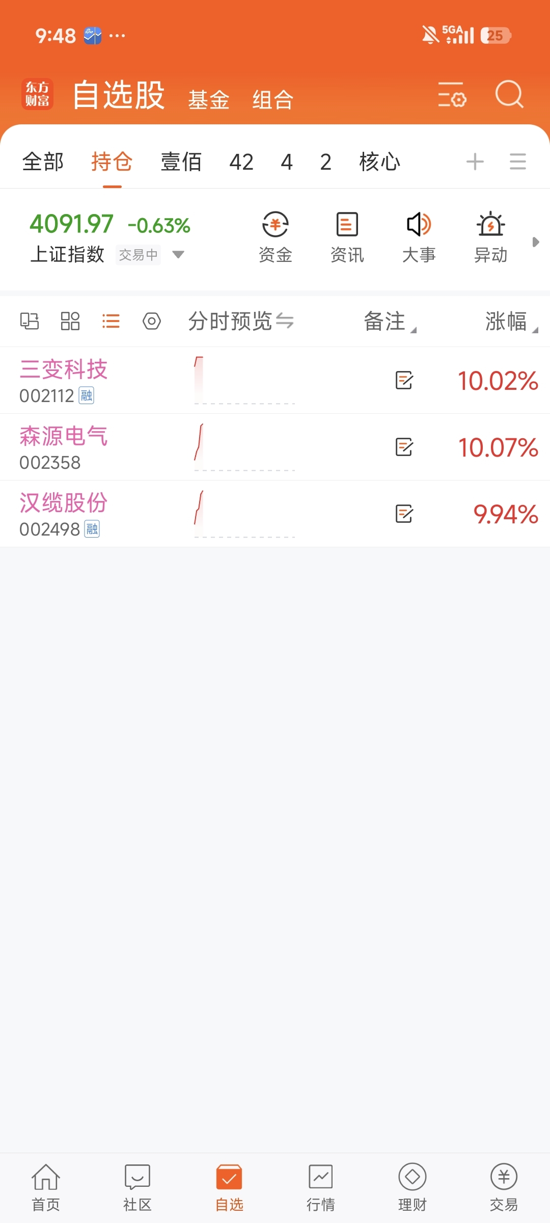 你应该是说同时3个个股。