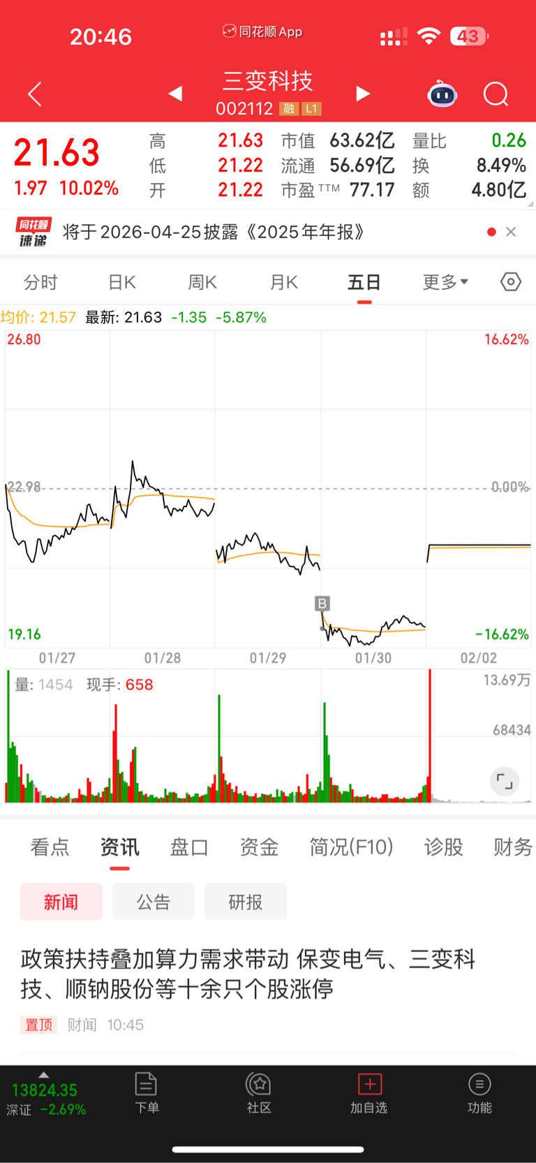 $三变科技(SZ002112)$ 我明天开盘就走,不贪,挪仓位去黄金股
