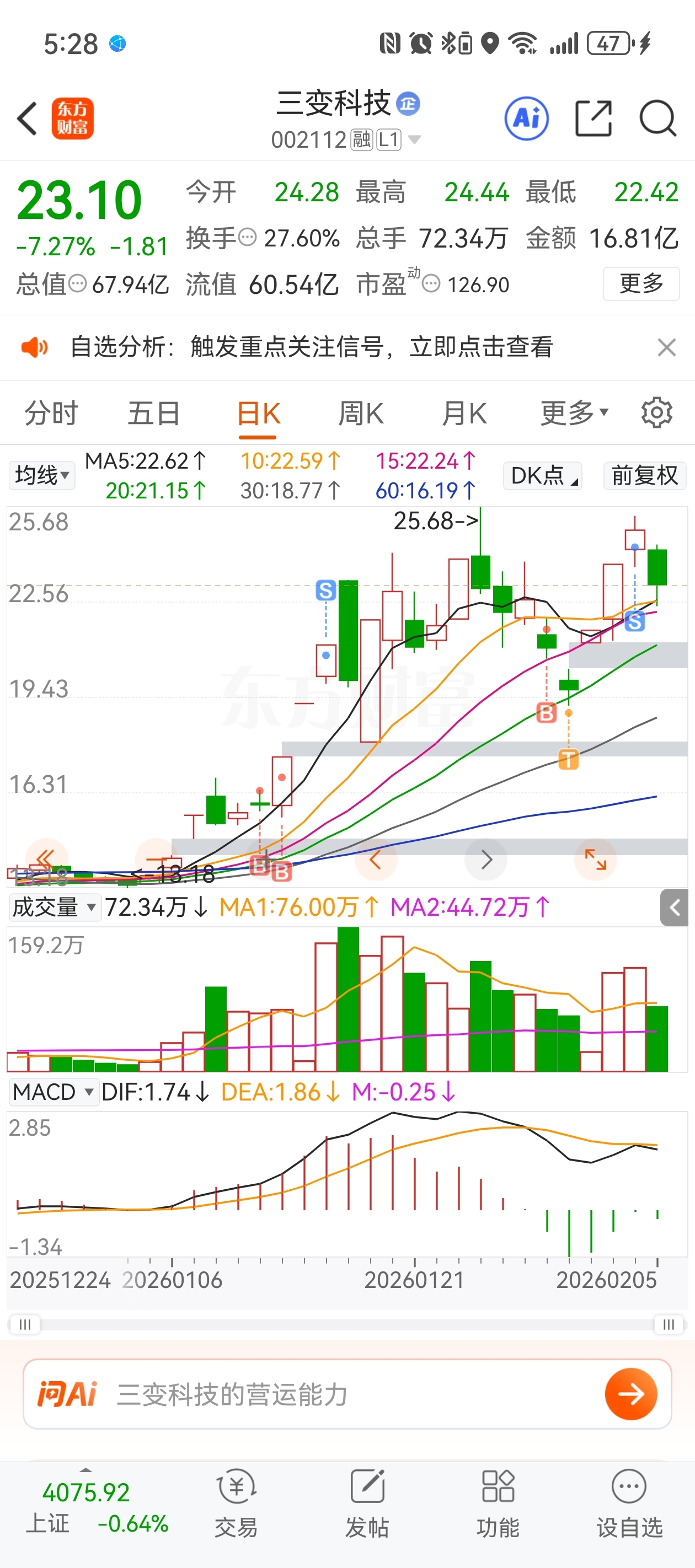$三变科技(SZ002112)$ 昨天卖在最低点还后悔不已,没卖在最高点,但每次都走的也巧。