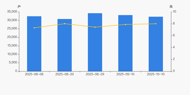 截至2025年10月10日,公司最新流通股本为3.23亿股。户均持有流通股数量由上期的9768股上升至1.01万股,户均流通市值8.05万元。