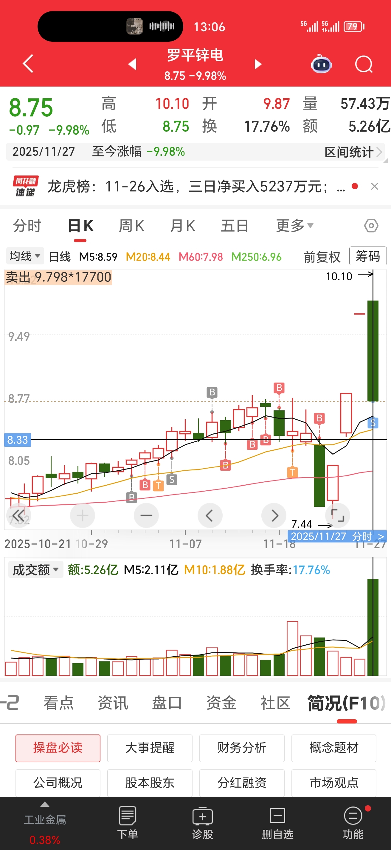 $罗平锌电(SZ002114)$ 感觉还能涨但是秉承三板原则还是走了 虽然错失很多很牛股但是只能这样做