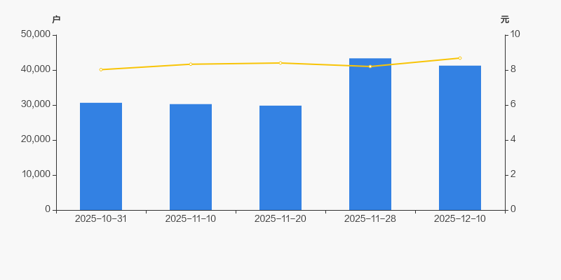 2025年10月31日至今,公司股东户数显著增长,区间涨幅为34.66%。2025年10月31日至2025年12月10日区间股价上涨8.23%。