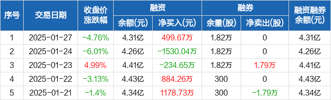 三维通信:融资净买入499.67万元,融资余额4.31亿元(01-27)