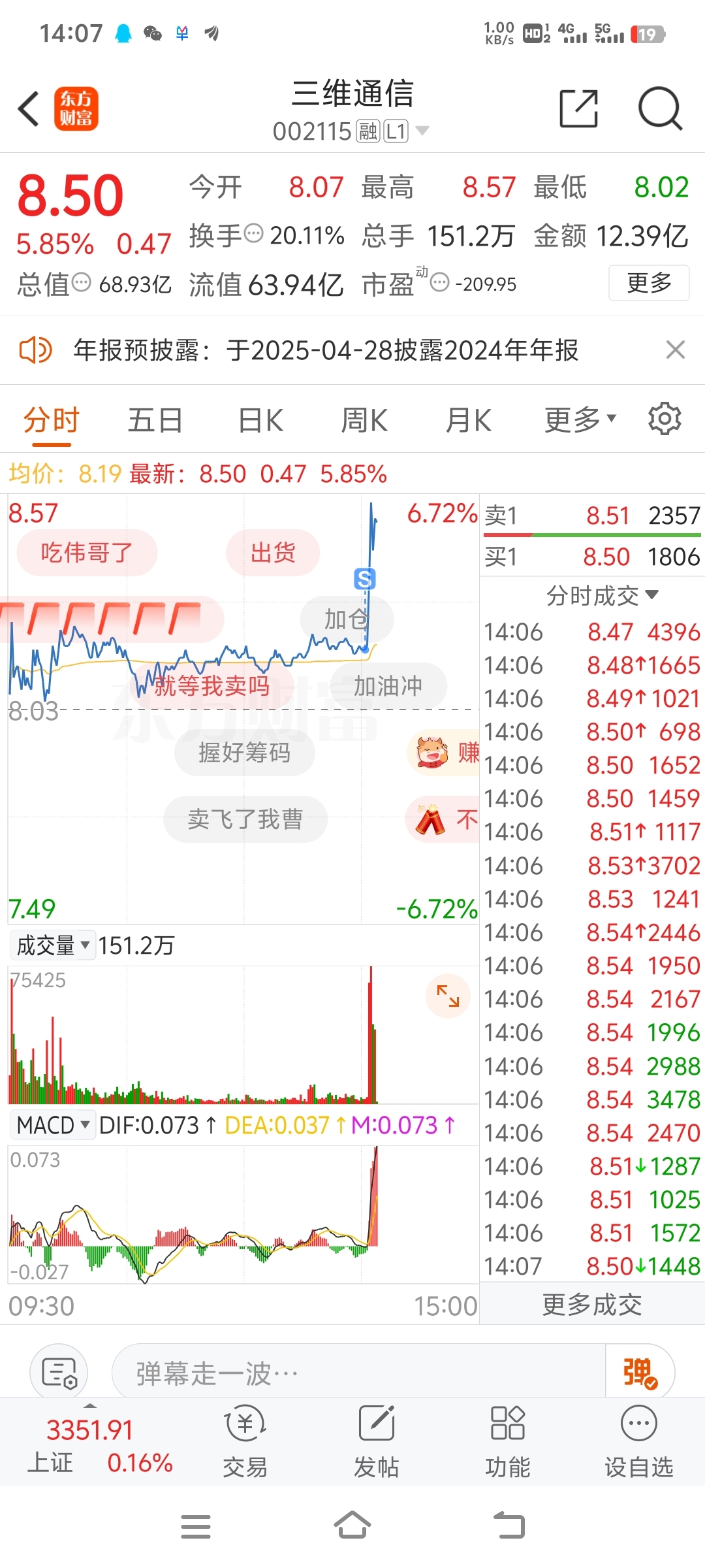 $三维通信(SZ002115)$ 好好好