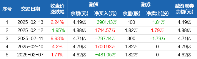 三维通信:融资净偿还3901.13万元,融资余额4.49亿元(02-13)