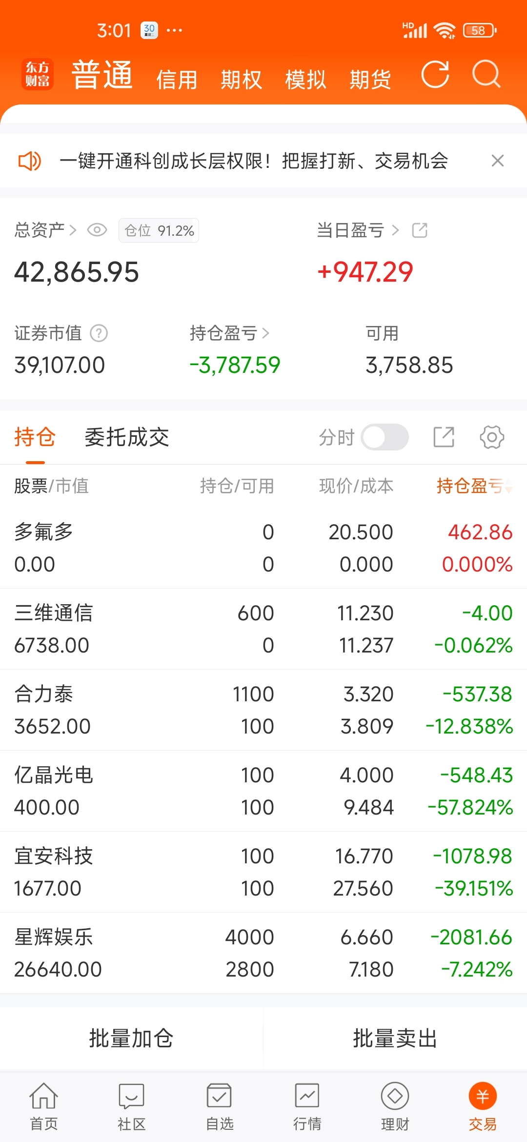 $三维通信(SZ002115)$ 今天看三维止跌反弹且有涨停之势,下午分批买入,节后视情况增减仓。