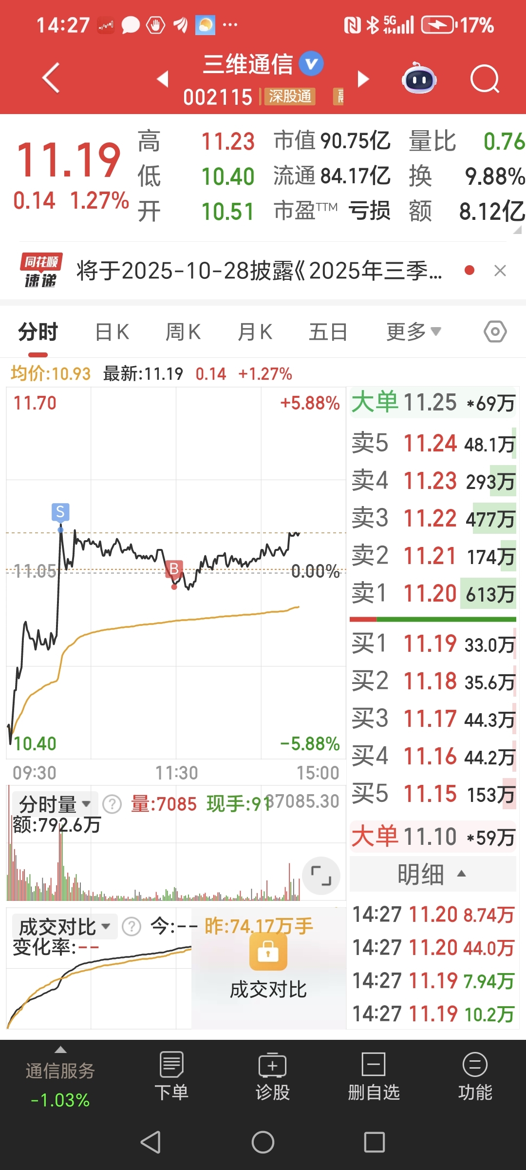 $三维通信(SZ002115)$ 就算是做T了吧,这趋势很难做T不动了拿住!