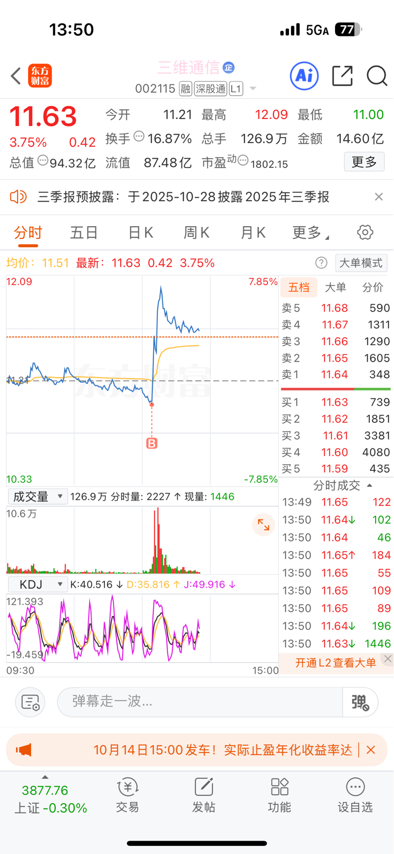 $三维通信(SZ002115)$ #实盘记录# 怎么说