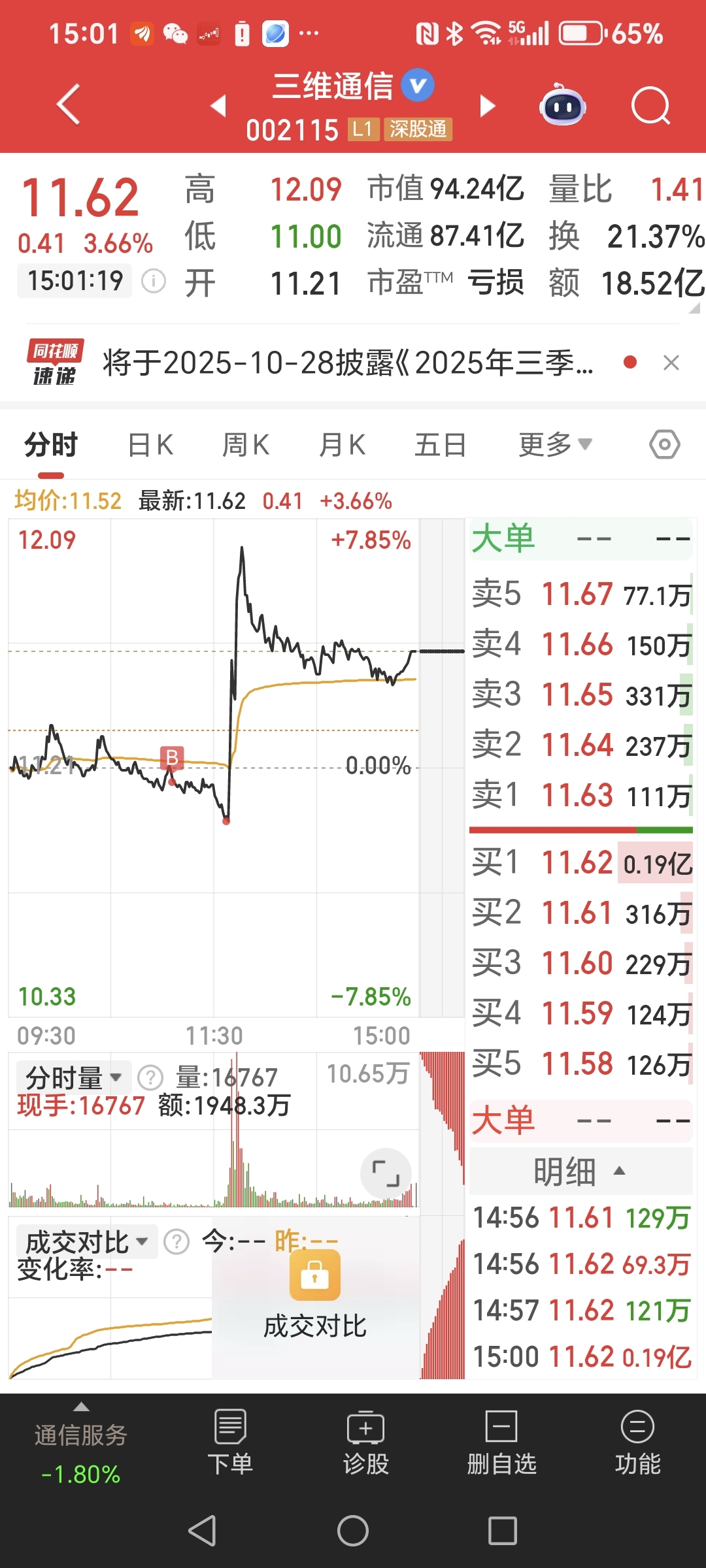 $三维通信(SZ002115)$ 能逆势而为后期看好!今天买的比较及时第二次最低价买入