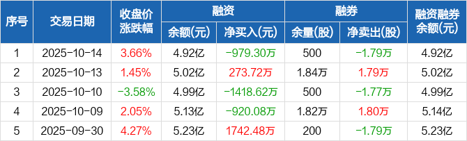 三维通信:融资净偿还979.3万元,融资余额4.92亿元(10-14)