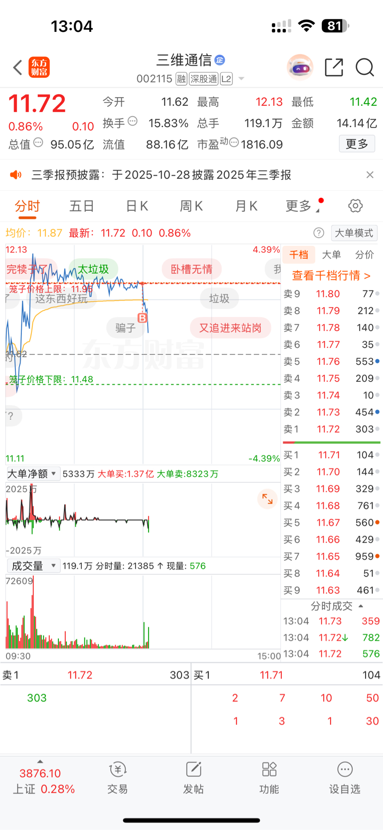 $三维通信(SZ002115)$ 缺我这三瓜俩枣吗?