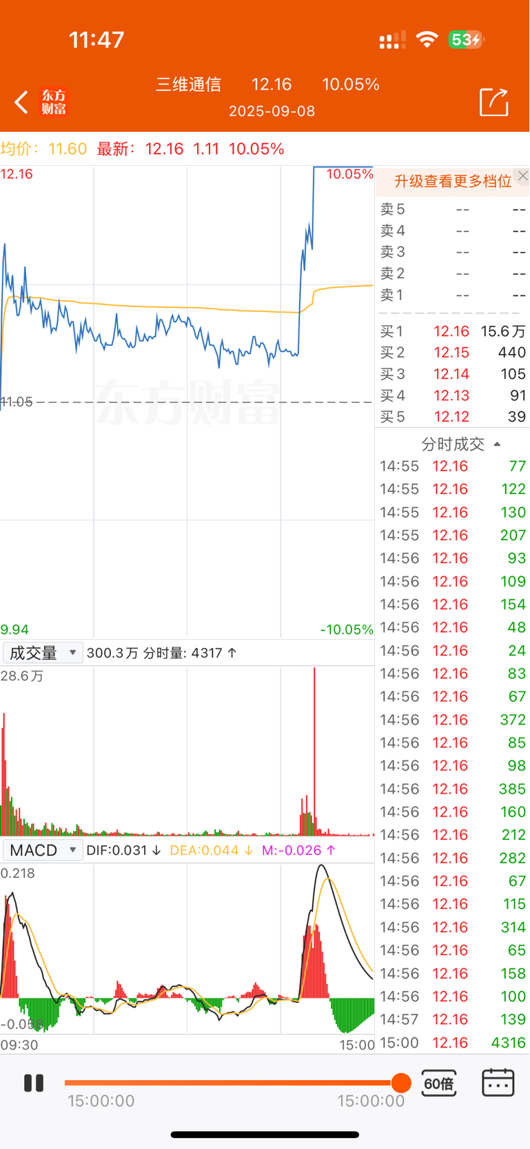 $三维通信(SZ002115)$ 会不会效仿 9 月 8 号的走势