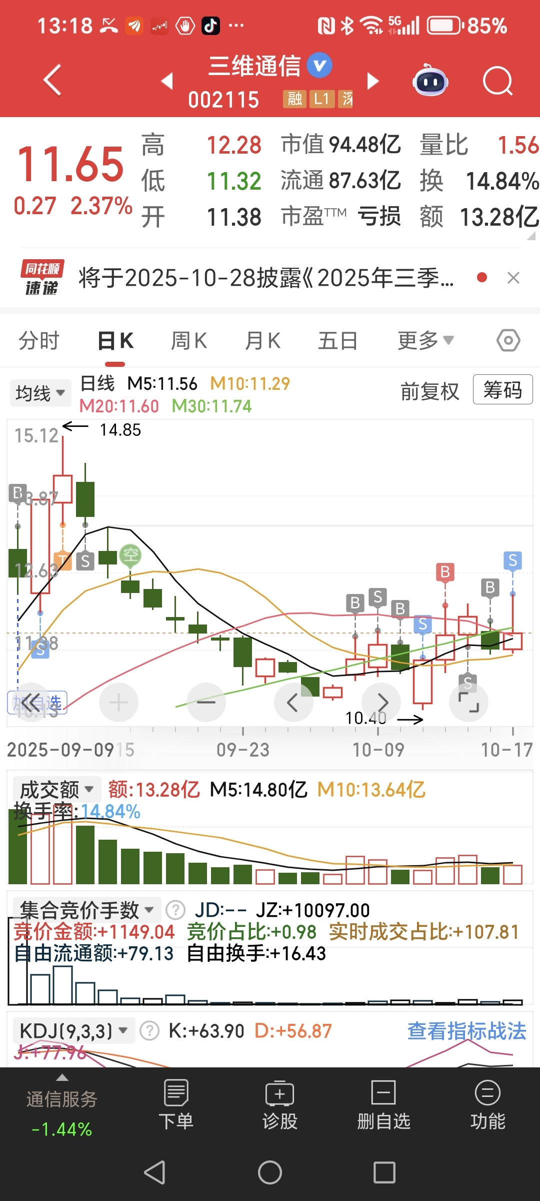 $三维通信(SZ002115)$ 早上12及时卖出!