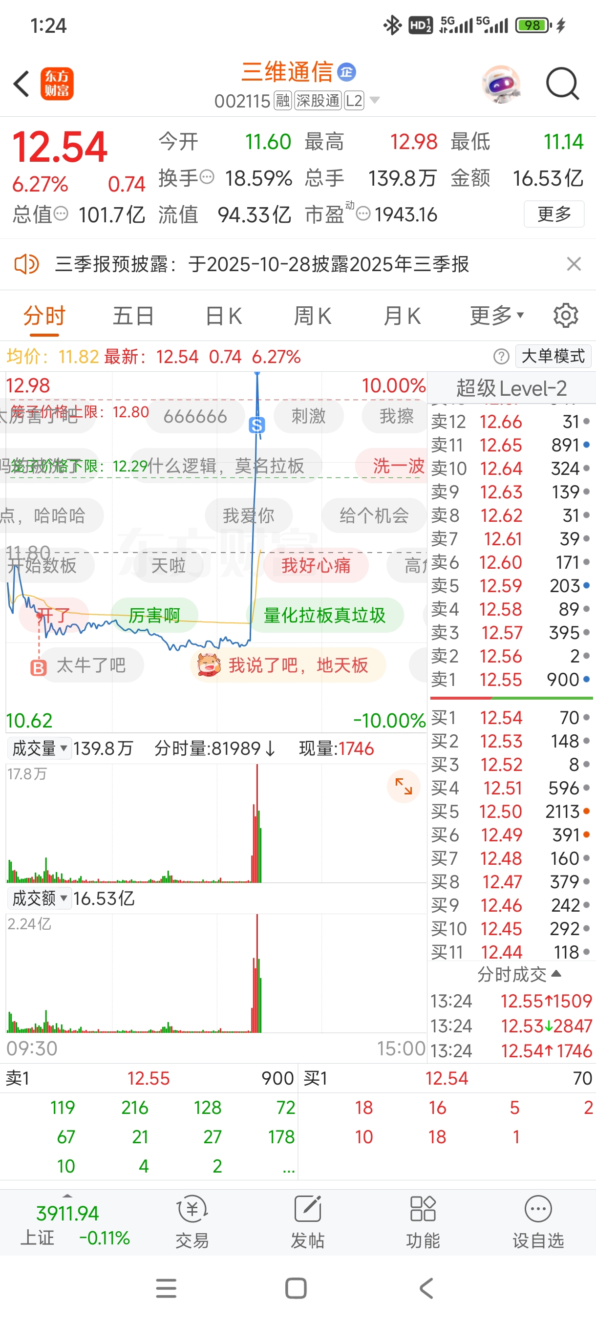 $三维通信(SZ002115)$ 啊?我都惊呆了???我还以为今天做T失败了,都放弃准备躺平了,刚才看了一眼,直接拉了六七个点???早上不给我机会做t,那就不要怪我板上出货了