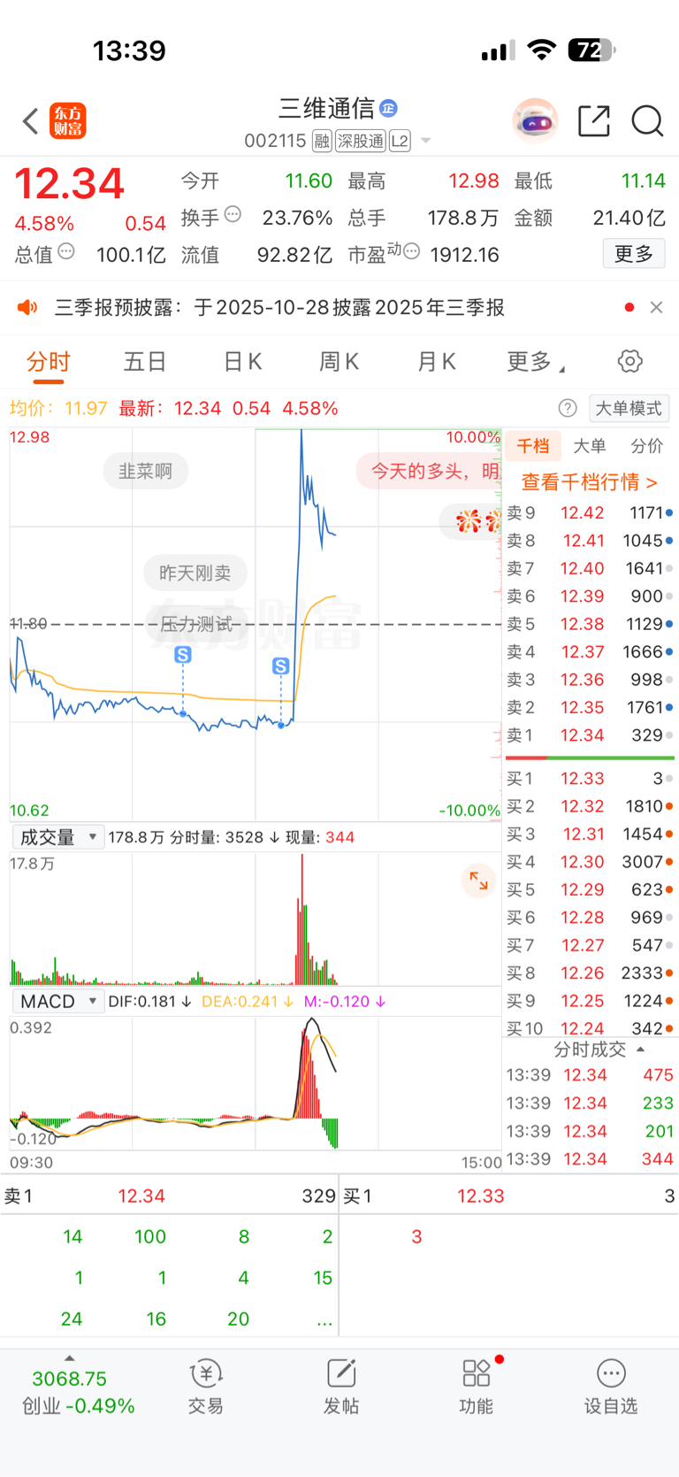 $三维通信(SZ002115)$ 几万股 没了几万块 人生呀