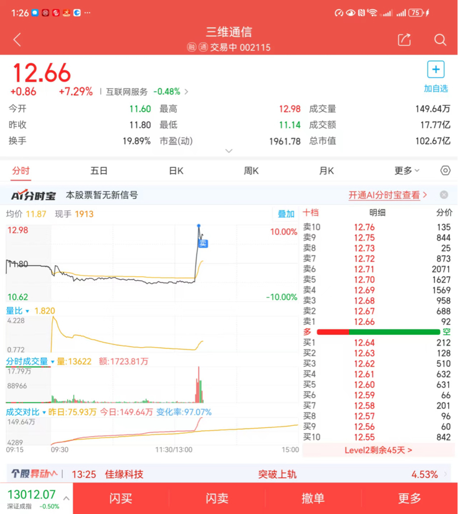 $三维通信(SZ002115)$ 昨天来,今天走.