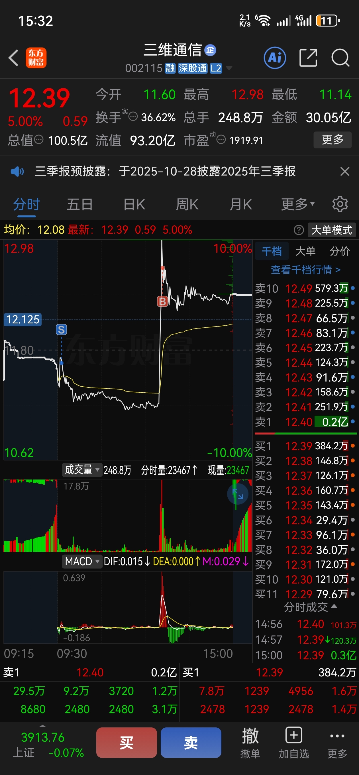 $三维通信(SZ002115)$ 让自己蠢笑的操作。