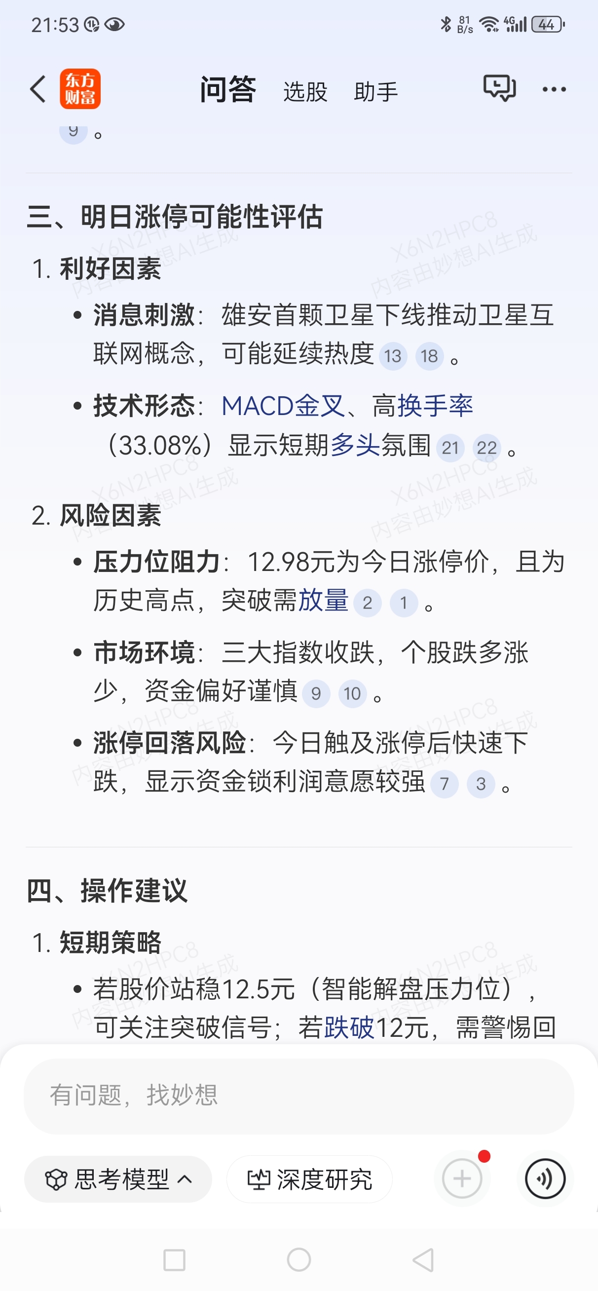 $三维通信(SZ002115)$ 三维通信明天应该有上涨空间,看了新闻今天卫星发射,以及雄安通信卫星的发射。都是拉动三维通信上升的动力。明天看能香突破12.5元,突破12.5元,既有上升的推动力。从k线图上和MACD的金叉上看,都有上涨的预期。今天涨停太快了,还没来得及反应,他又下来了。也没卖。
